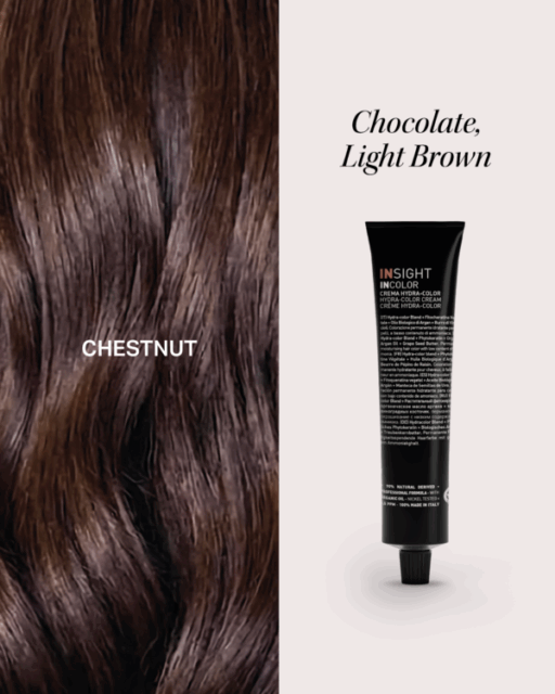 Trend Chestnut wykonasz w salonie z użyciem INCOLOR Hydra-Color. To kremowy system koloryzacji o niskiej zawartości amoniaku, którego formuła — wzbogacona o składniki emoliencyjne i nawilżające — zapewnia intensywny, błyszczący i trwały kolor z poszanowaniem włókna włosa.